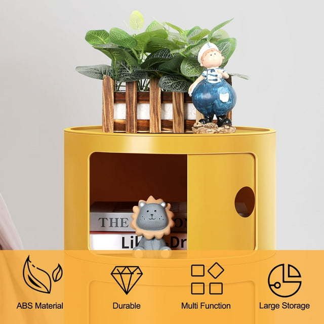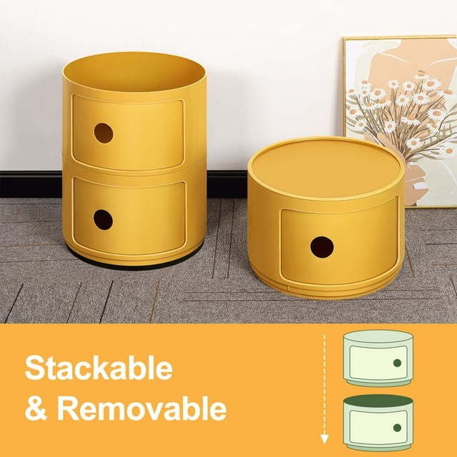 Product details [Dimensions] 22.44" x 12.04" x 12.04" [Material] Plastic [3 Tier] Each layer is easily detachable so you can use each barrel individually or as a stacked 3 tier nightstand. [Slide] The round handle allows you to slide the door with ease to access your items.Assembled Product Weight