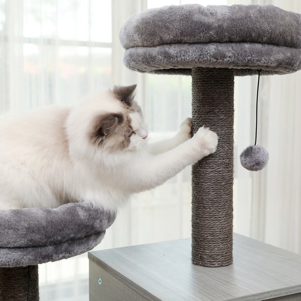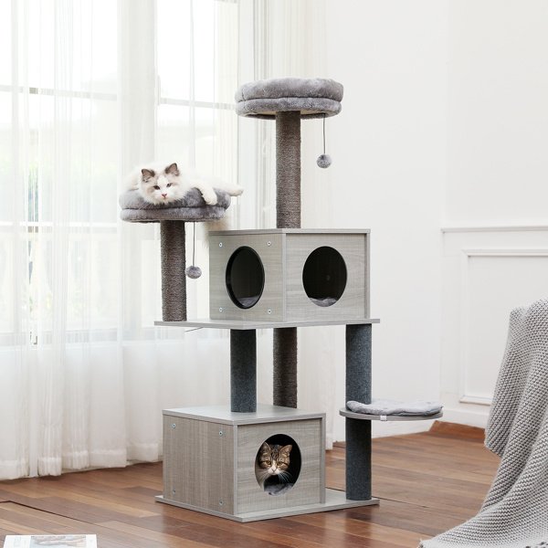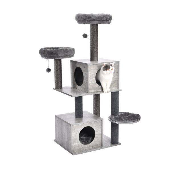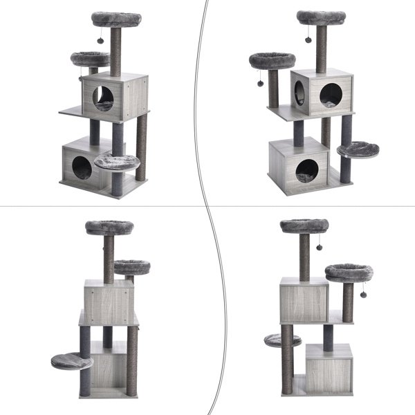 Home > Medium Cat Tree Activity Center With Multi Platforms, Cat Play Tower Wooden Cat Tree With Sisal-covered Cat Scratching Posts Grey