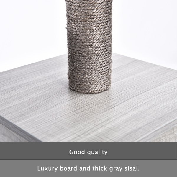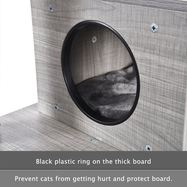 1. MATERIAL OF HIGH QUALITY - High density veneer board, smooth and sturdy. Thickened natural gray sisal, it can withstand the long-term scratching of cats. Thickened felt cloth offers different sense of scratching. 2 comfortable cushions inside the cat house and 2 top perches are removable and machine washable, soft and easy to clean.